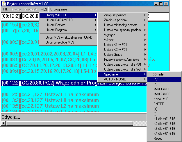 Menu „MLS”